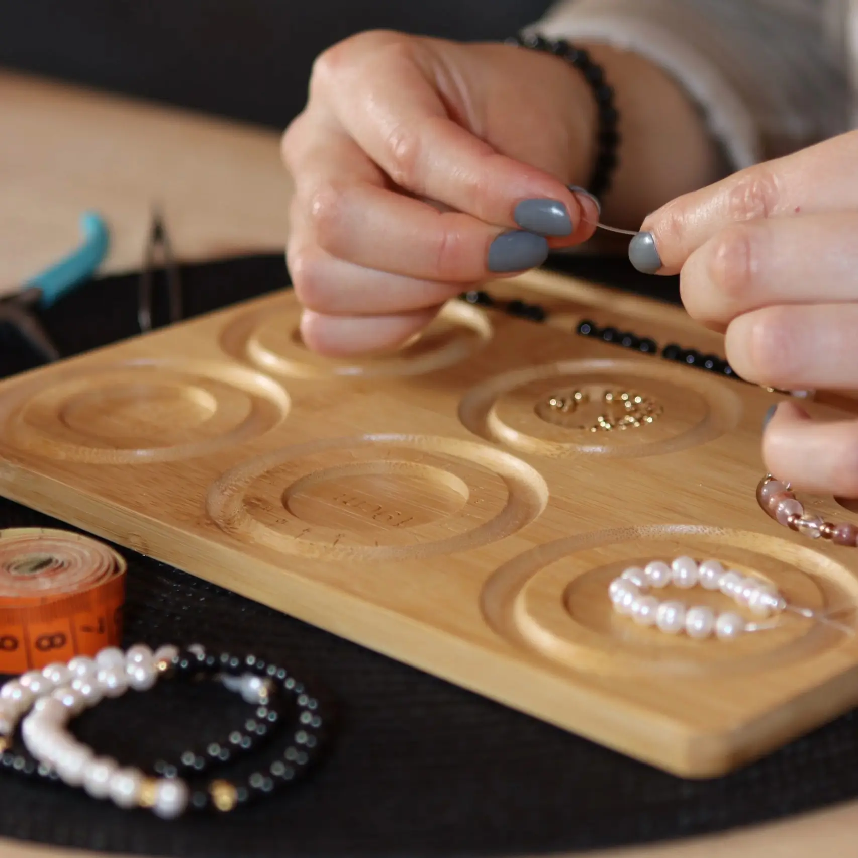 Ich erkläre dir die Technik zum Fädeln der Armbänder und begleite dich Schritt für Schritt bei der Gestaltung deines persönlichen Schmuckstücks.