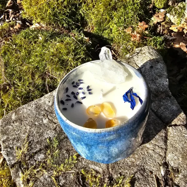 Keramik Kerze “Ocean Glow” mit Bergkristall und Citrinchips