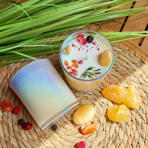 Die Kristallkerze Be Happy ist eine hochwertige Duftkerze aus nachhaltigem Sojawachs im Glas, die nicht nur einen angenehmen Duft verbreitet, sondern auch als dekoratives Element zum Blickfang wird. Mit ihrem einzigartigen Design und den positiven Schwingungen ist sie ein wunderbares Geschenk für Dich selbst, Deine Liebsten oder ein perfektes Mitbringsel.