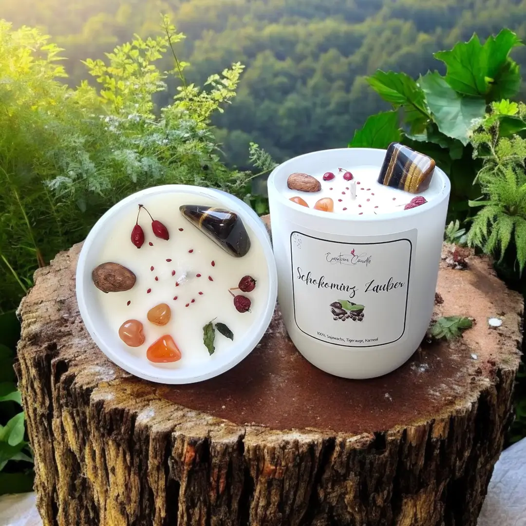 Natürlich duftende Minz-Schoko-Kerze mit Heilsteinen – ideal für Genießer:innen & Duftpurist:innen